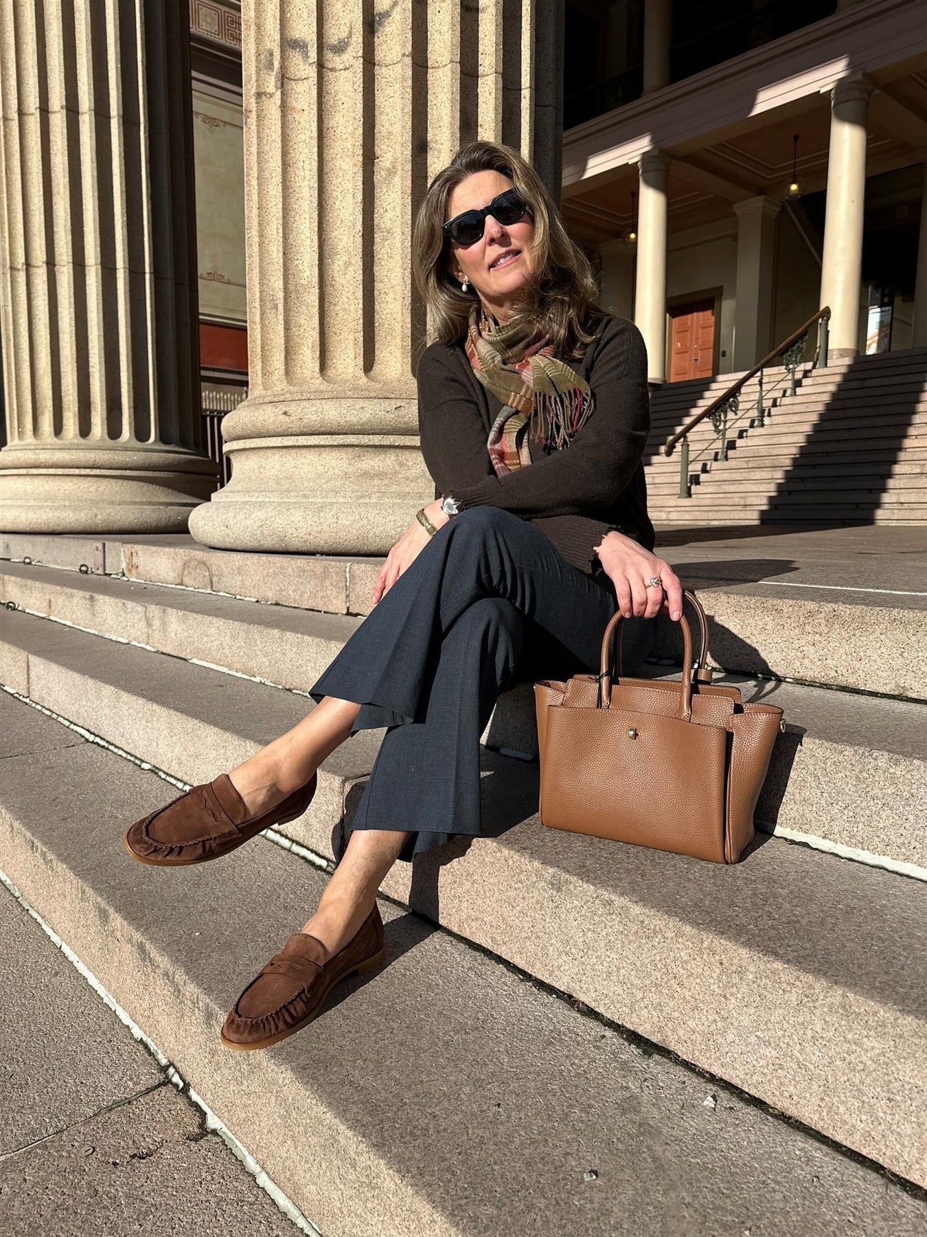 Loafer i cognacbrunt semsket kalveskinn