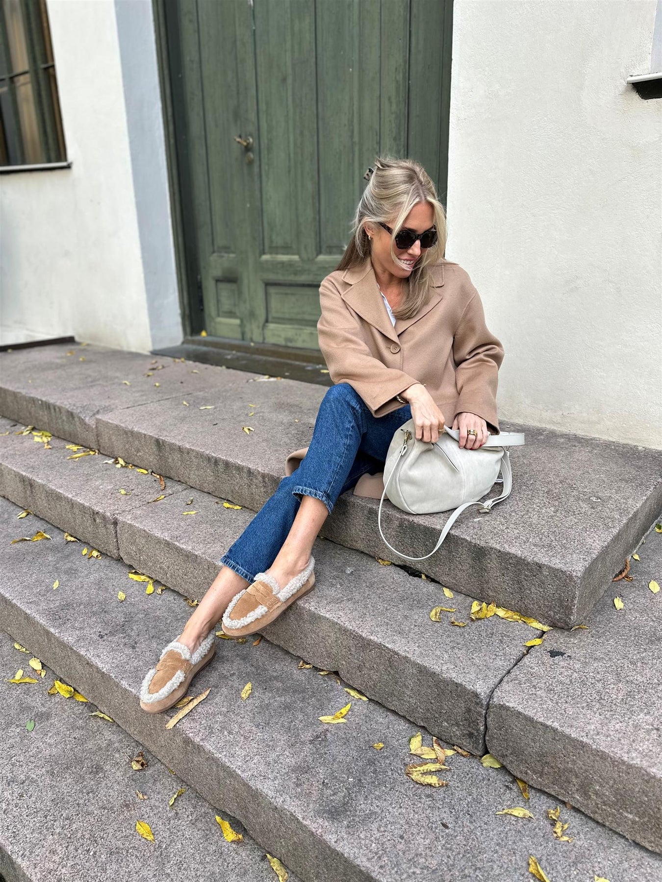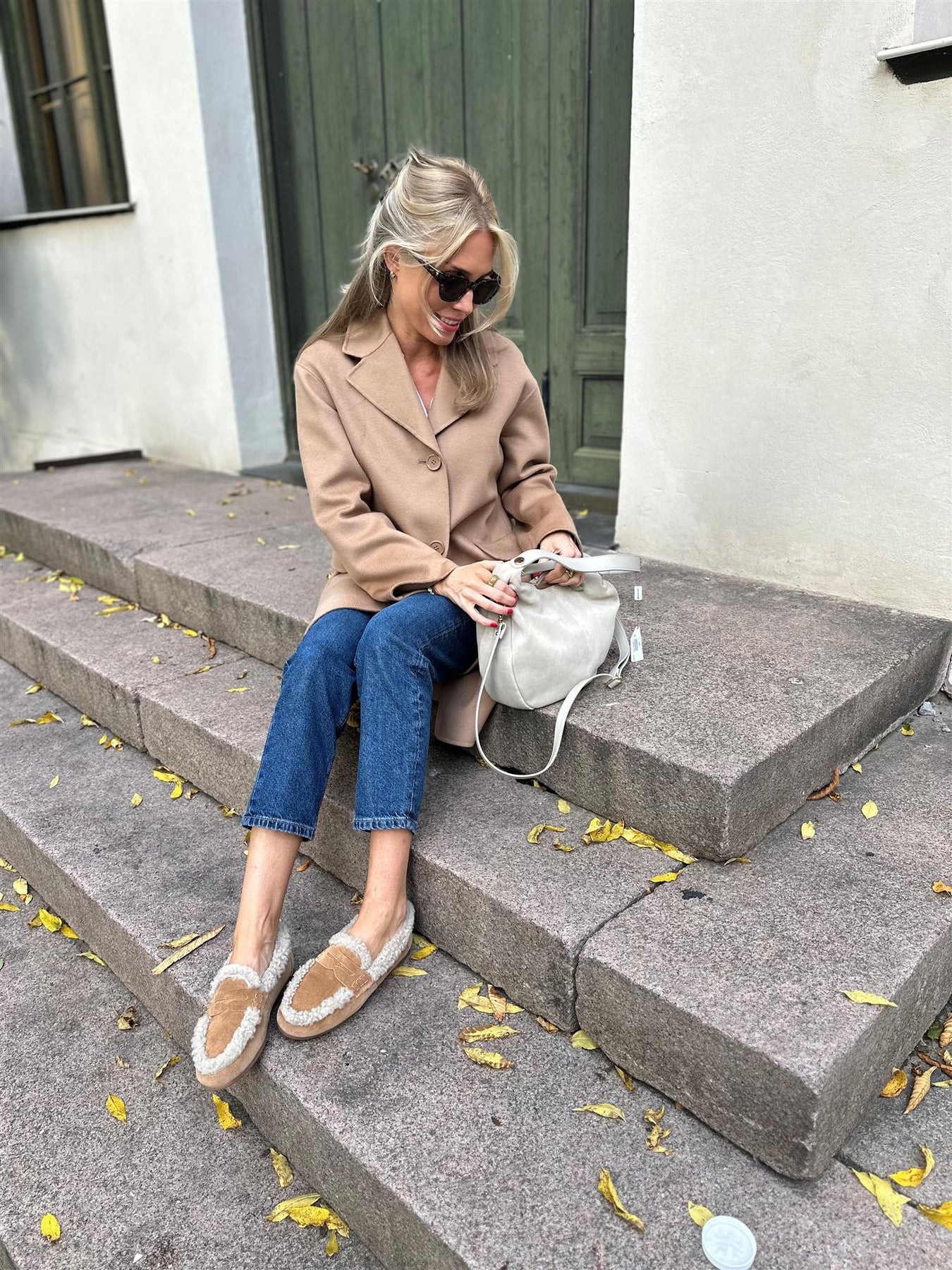 Myk og nett veske i semsket kalveskinn med avrundet fasong og elegant, minimalistisk uttrykk. Den lyse gråfargen gir et lett og eksklusivt preg som passer perfekt hele året – både til lyse sommerantrekk og mer dempede høstfarger.