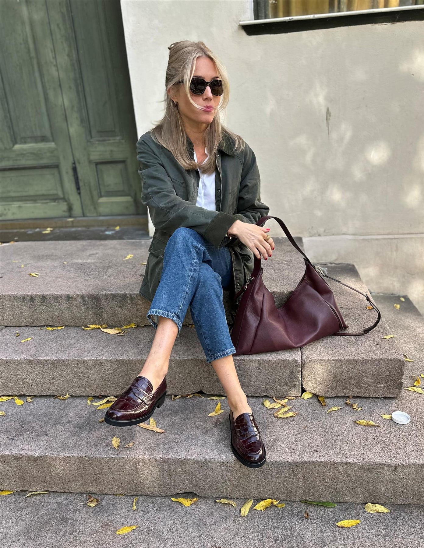 Minimalistisk og elegant skulderveske i mykt kalveskinn med ren, geometrisk fasong. Den brede skulderremmen gjør den behagelig å bære, mens innsiden byr på glidelåslomme og åpne lommer for enkel organisering. Vesken lukkes sikkert med glidelås og har en fleksibel konstruksjon som gjør den både romslig og lett å bruke til hverdags.