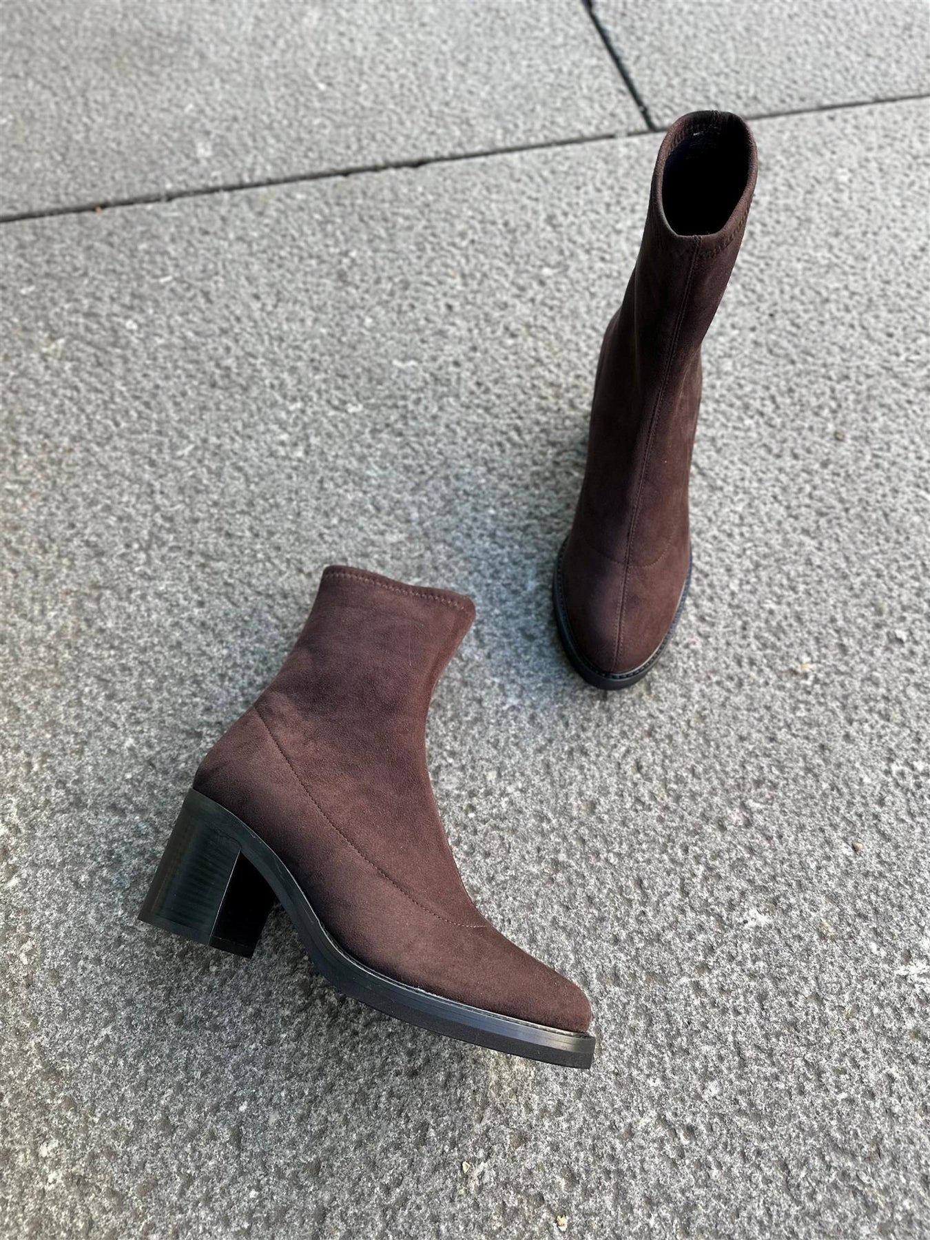 Nydelige semskete stretch-boots! Sitter vakkert på fot, og med en hæl du kan tåle hele dagen.