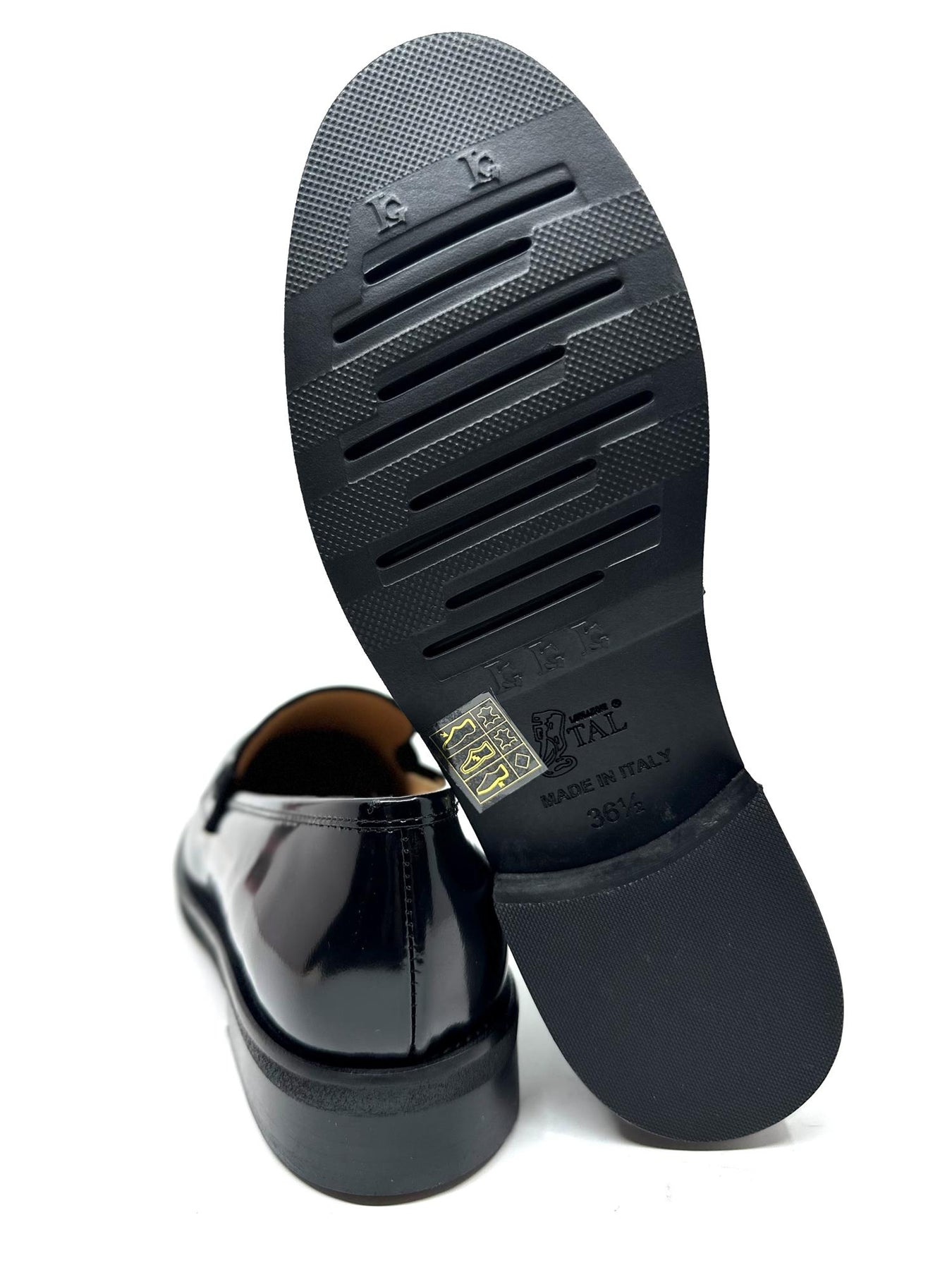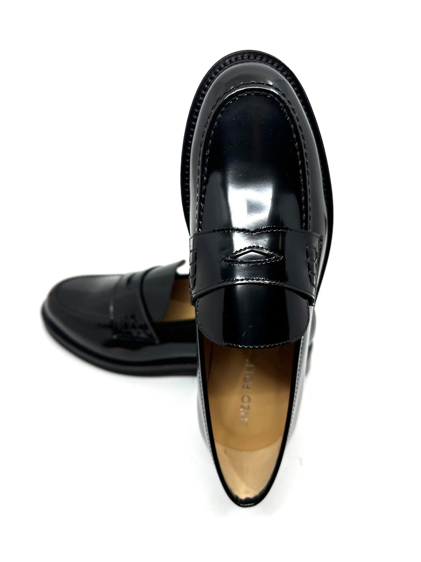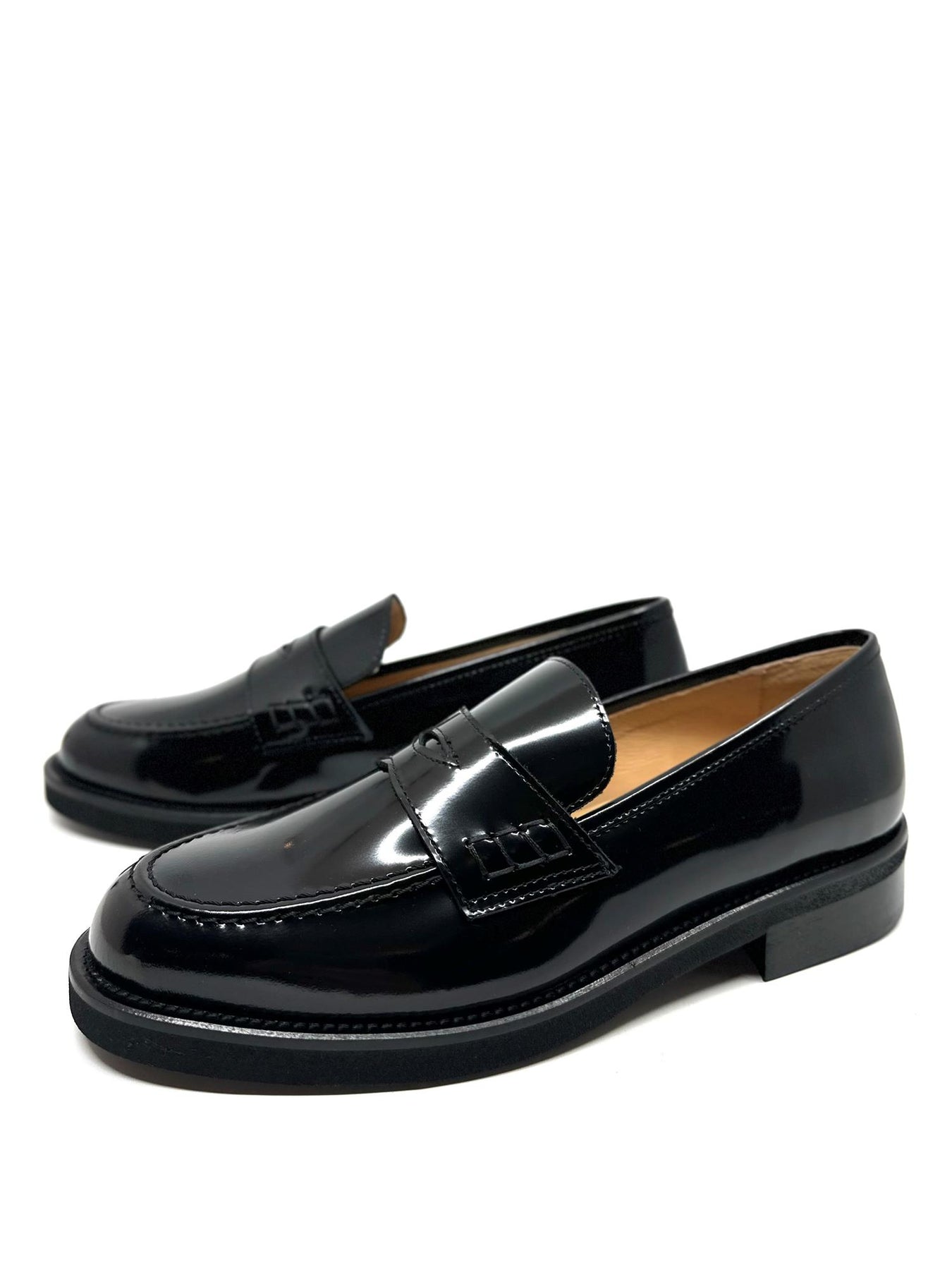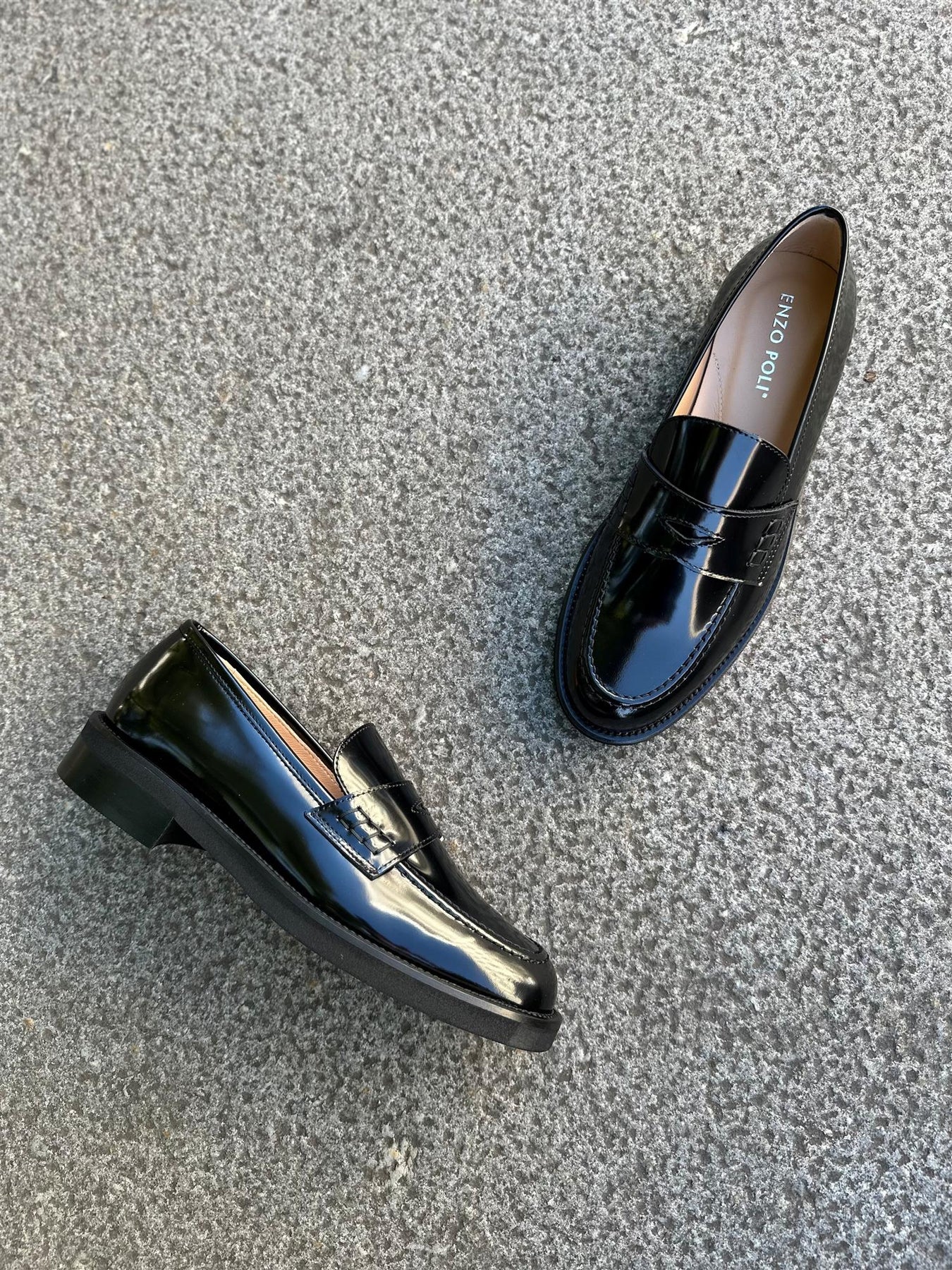 Utrolig kul og klassisk sort loafer i børstet kalveskinn med grov såle. Veldig god passform, perfekt til alt fra dressbukser, skjørt, og også til jeansen.