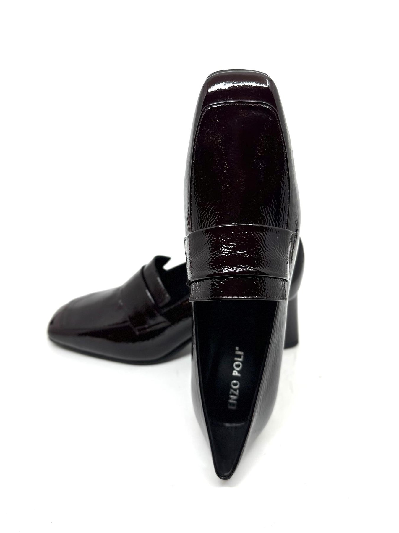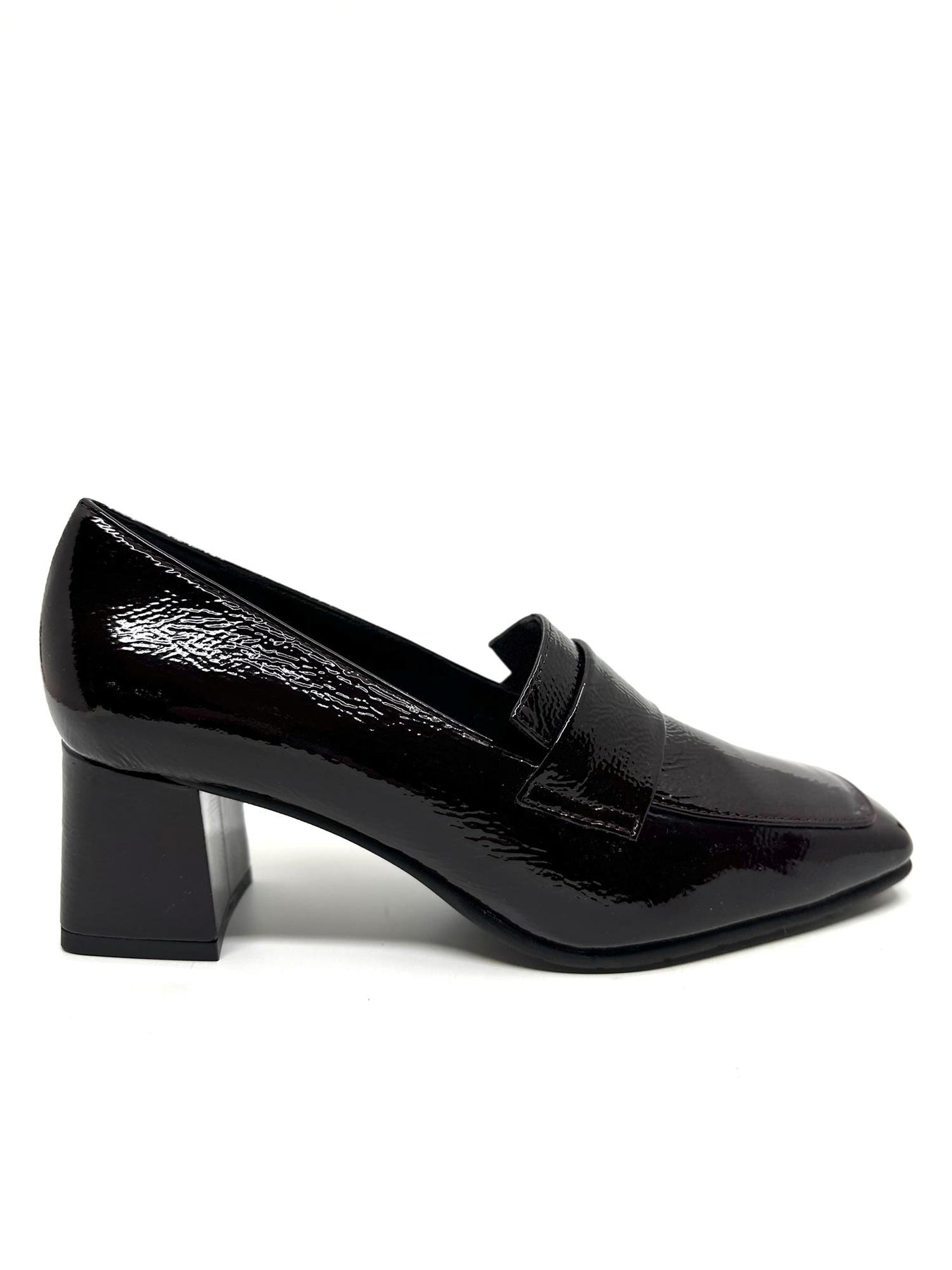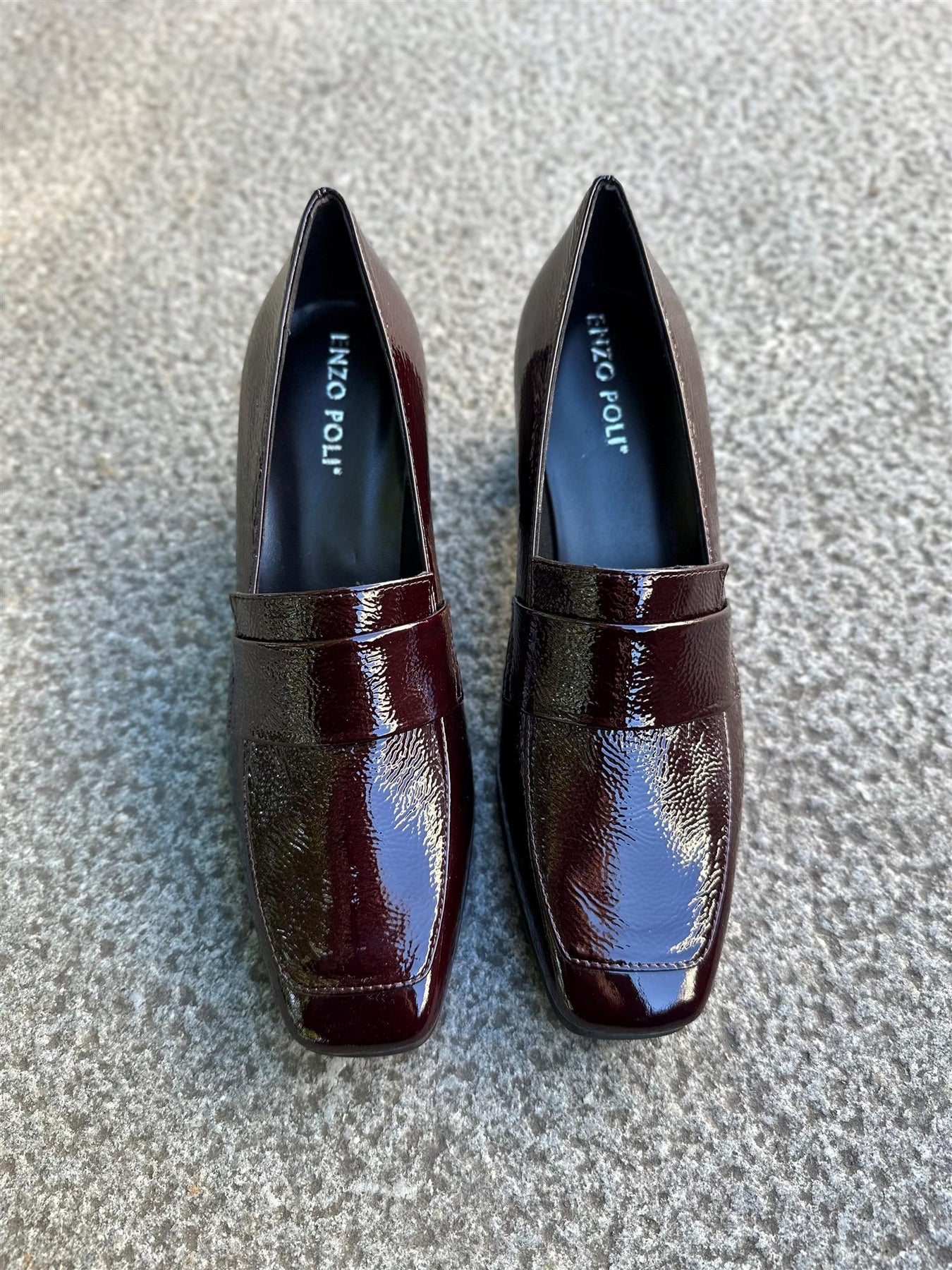 Denne sofistikerte byskoen kombinerer tidløs eleganse med moderne komfort. Den butte tåformen gir et klassisk uttrykk, mens den kraftige hælen gir både høyde og stabilitet. Det glansfulle skinnet gjør skoen til et blikkfang, perfekt for både hverdagsbruk i byen og kveldsanledninger. Gummisålen sørger for godt grep og lang holdbarhet.