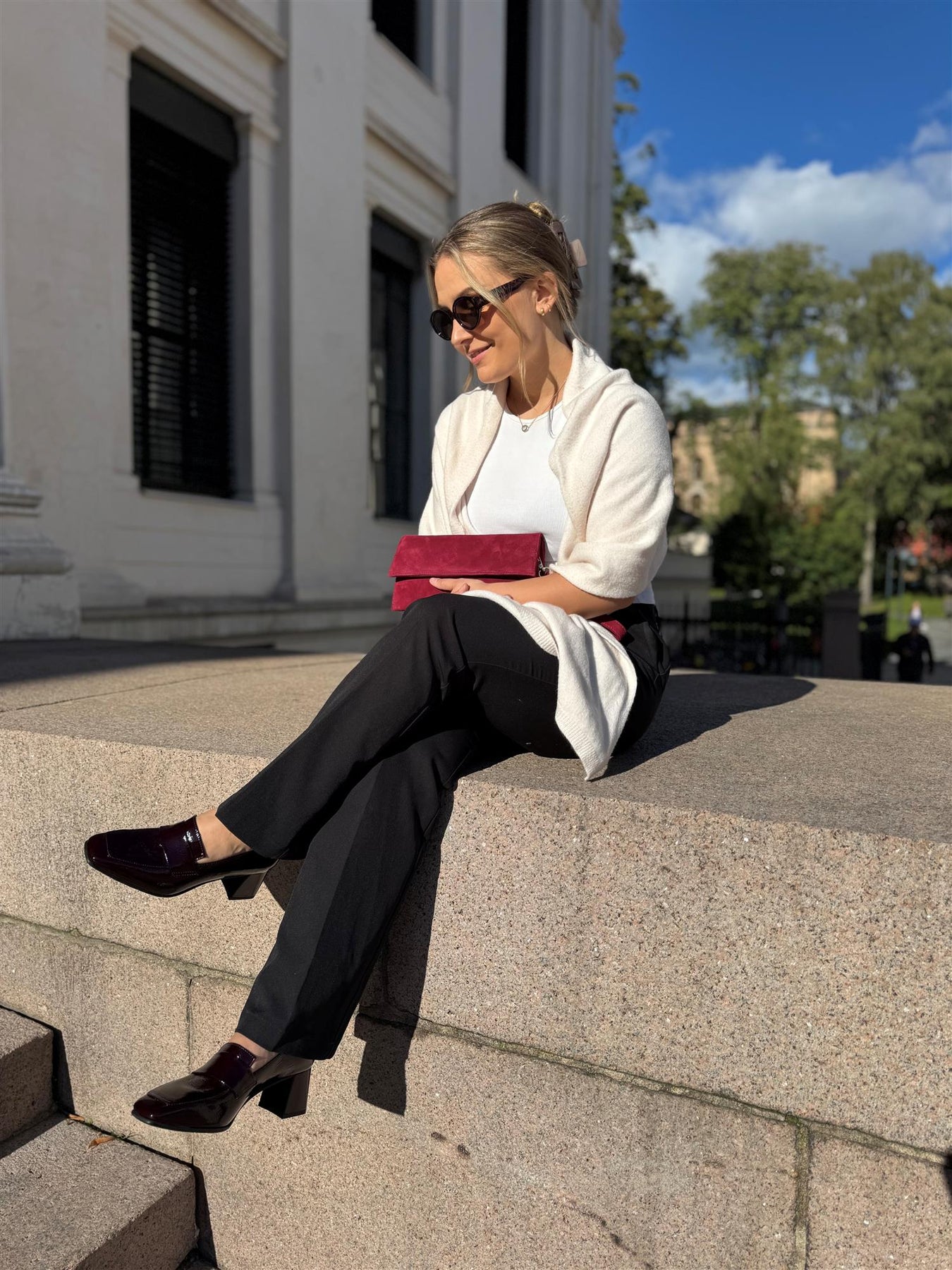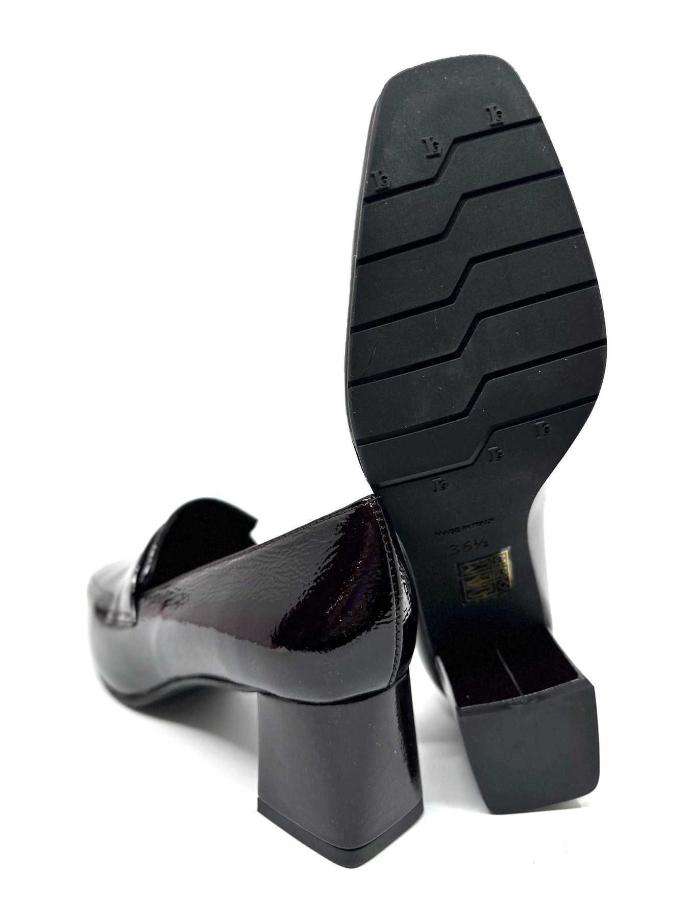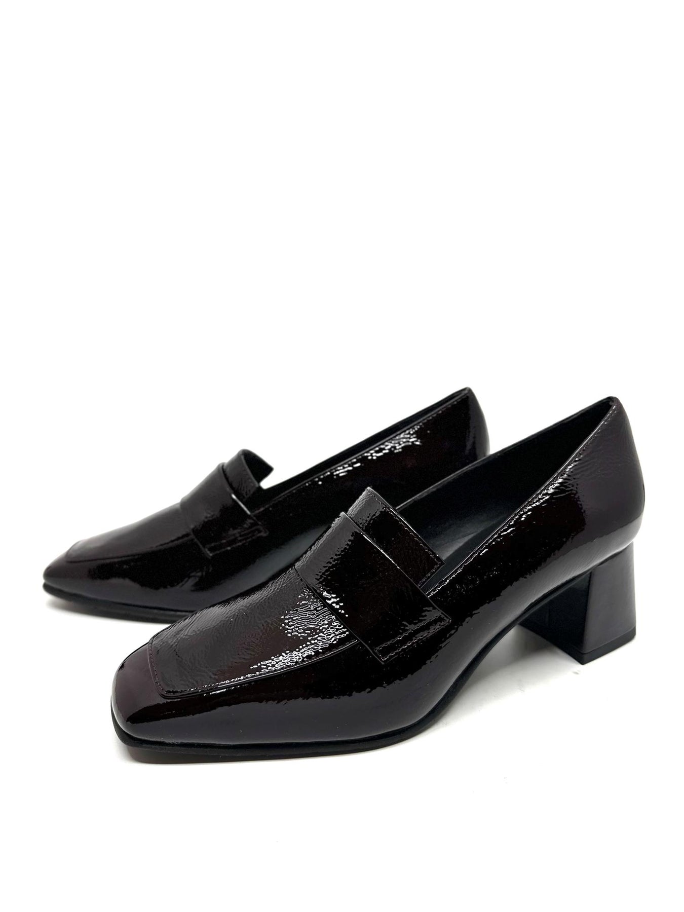 Denne sofistikerte byskoen kombinerer tidløs eleganse med moderne komfort. Den butte tåformen gir et klassisk uttrykk, mens den kraftige hælen gir både høyde og stabilitet. Det glansfulle skinnet gjør skoen til et blikkfang, perfekt for både hverdagsbruk i byen og kveldsanledninger. Gummisålen sørger for godt grep og lang holdbarhet.