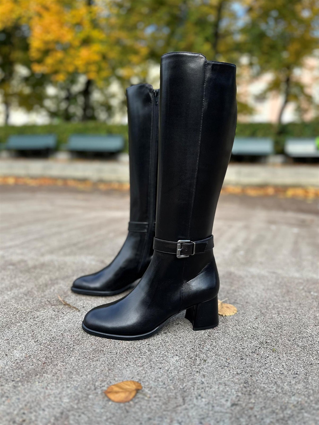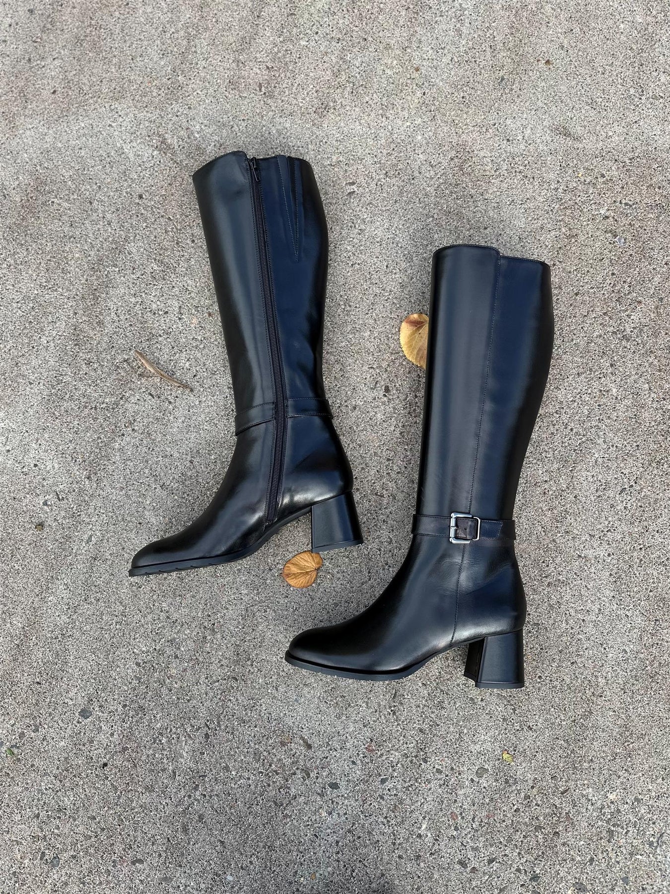 Høy støvlett i glatt kalveskinn