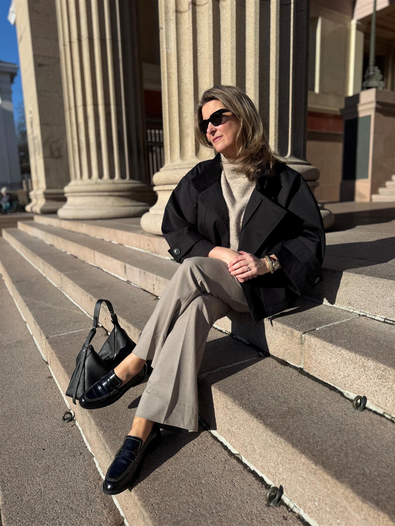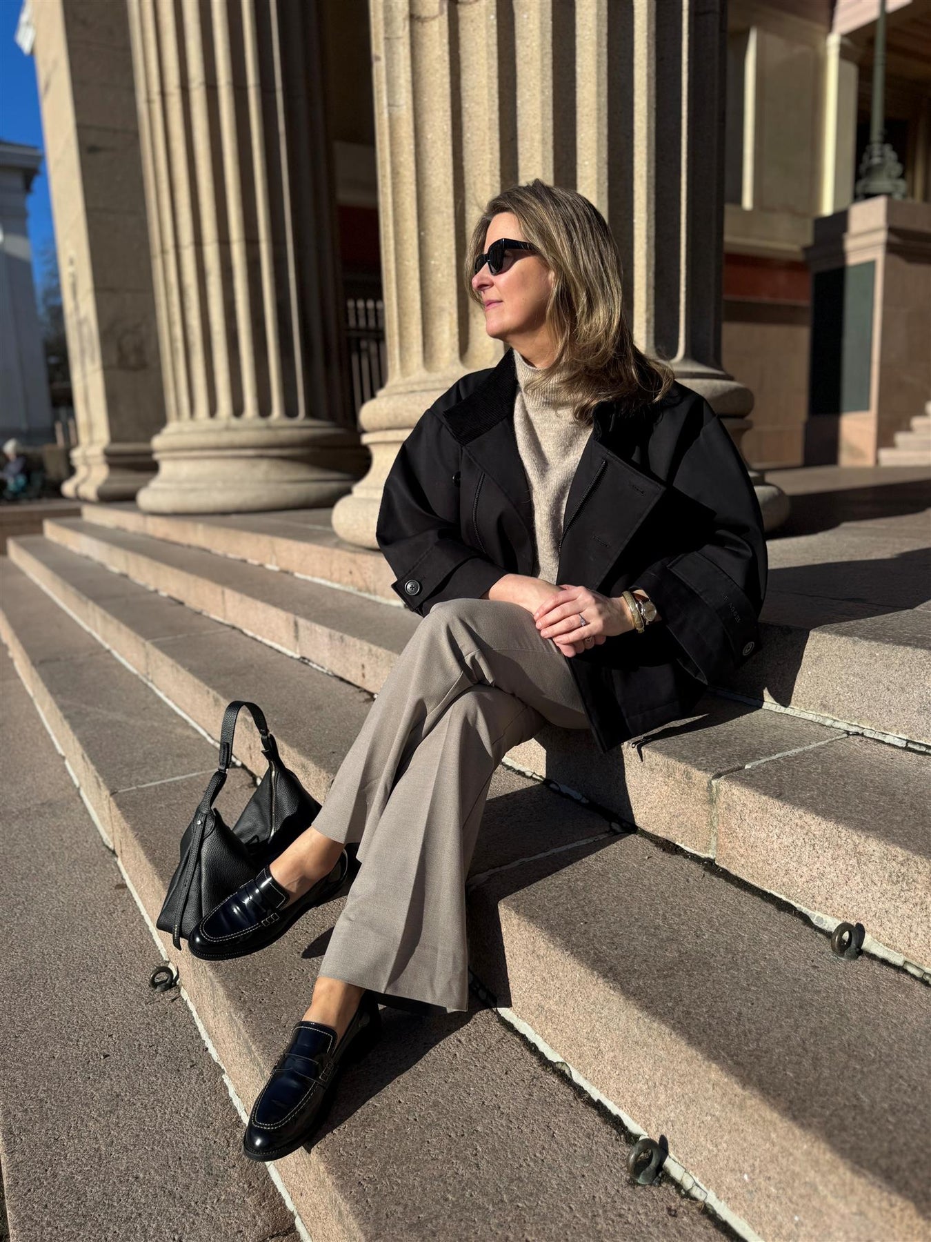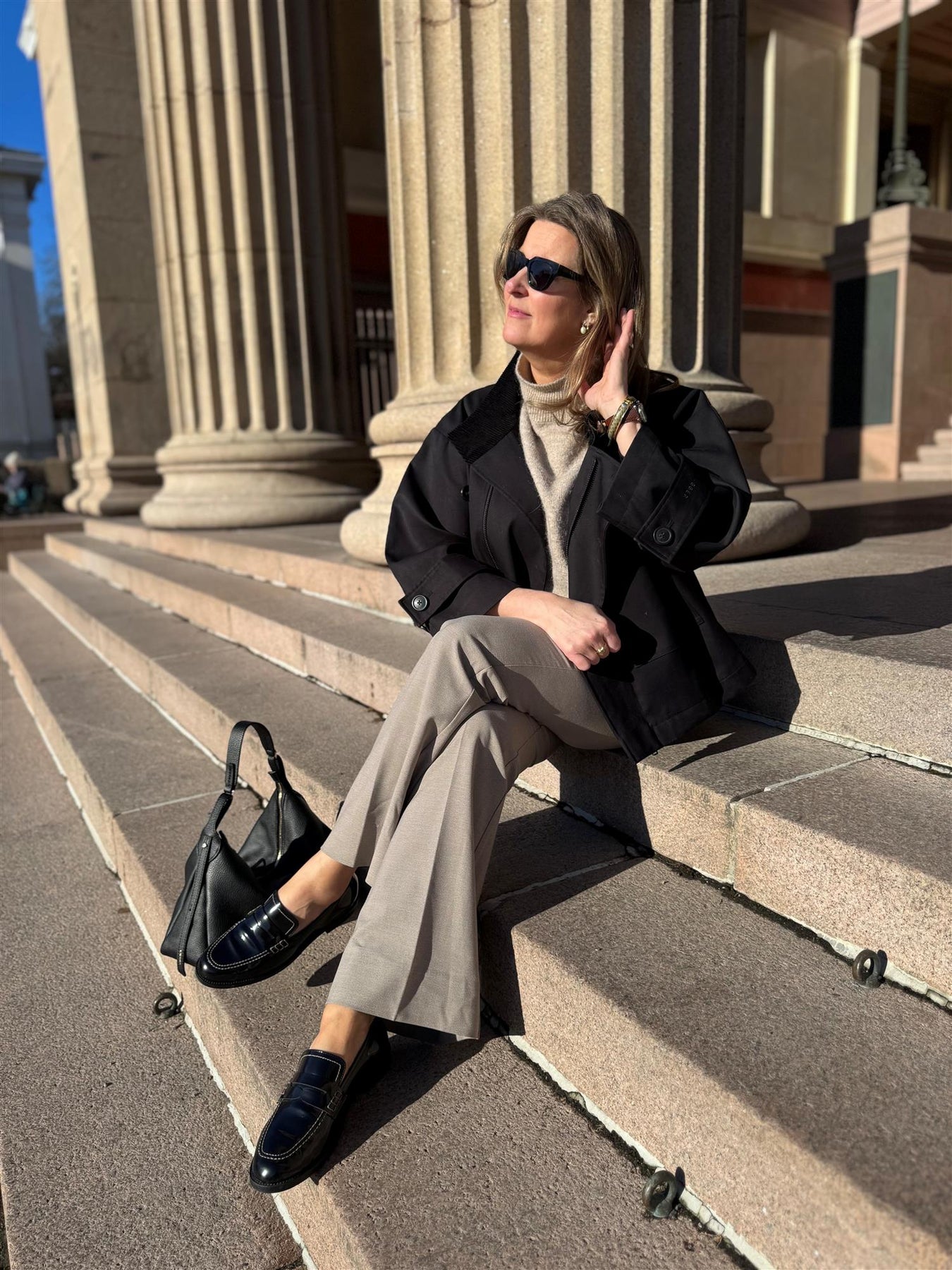 Denne loaferen er laget i glatt kalveskinn og har et rent uttrykk med dekorativ rem over vristen. Den lave hælen og den stabile sålen gjør skoen behagelig å bruke gjennom dagen, og den enkle silhuetten gjør den lett å kombinere med både jeans, dressbukser og skjørt.