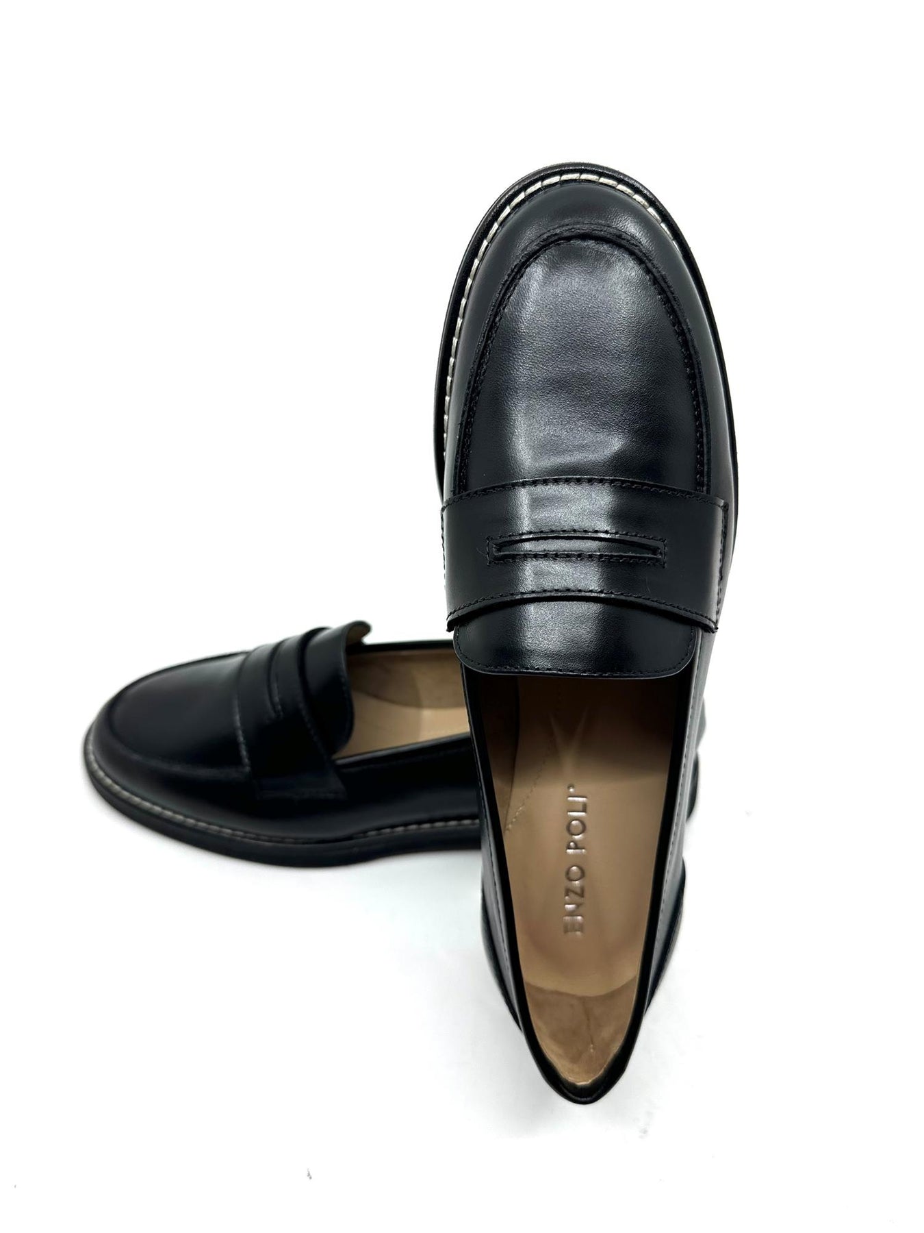 Denne loaferen er laget i ekstra mykt kalveskinn og har et enkelt uttrykk med rene linjer og en klassisk form. Skinnet er svært mykt og følger foten fint, noe som gjør skoen uvanlig behagelig å ha på. Den lave hælen gjør modellen lett å bruke gjennom hele dagen, både til hverdags og litt penere anledninger.