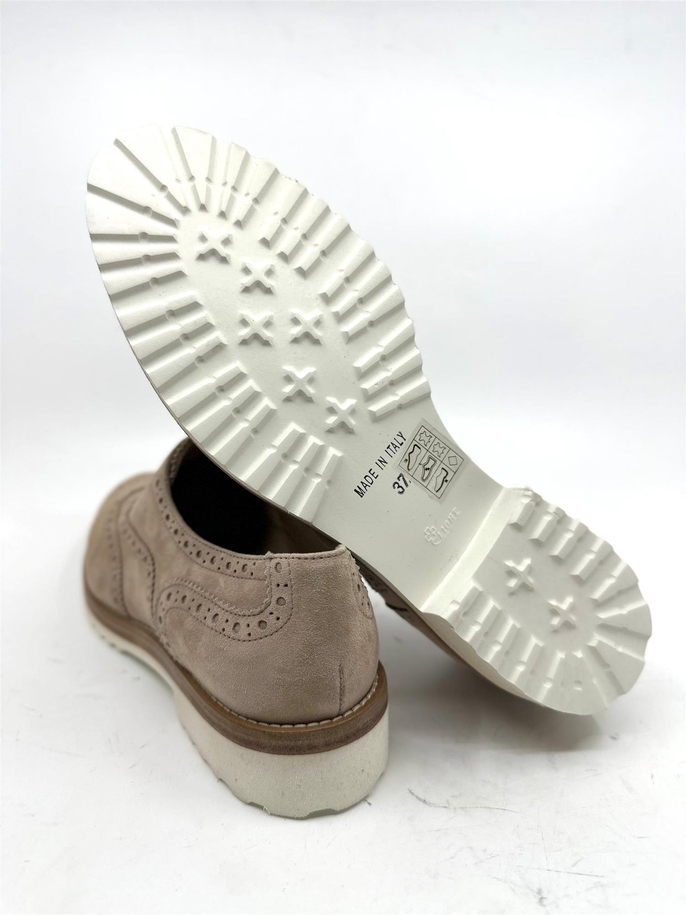 En lett og behagelig sko i mykt semsket kalveskinn, med klassiske brogue-detaljer. Modellen er uten lisser og har en liten elastisk åpning over vristen, som gjør den enkel å ta av og på og gjør at den sitter fint på foten.