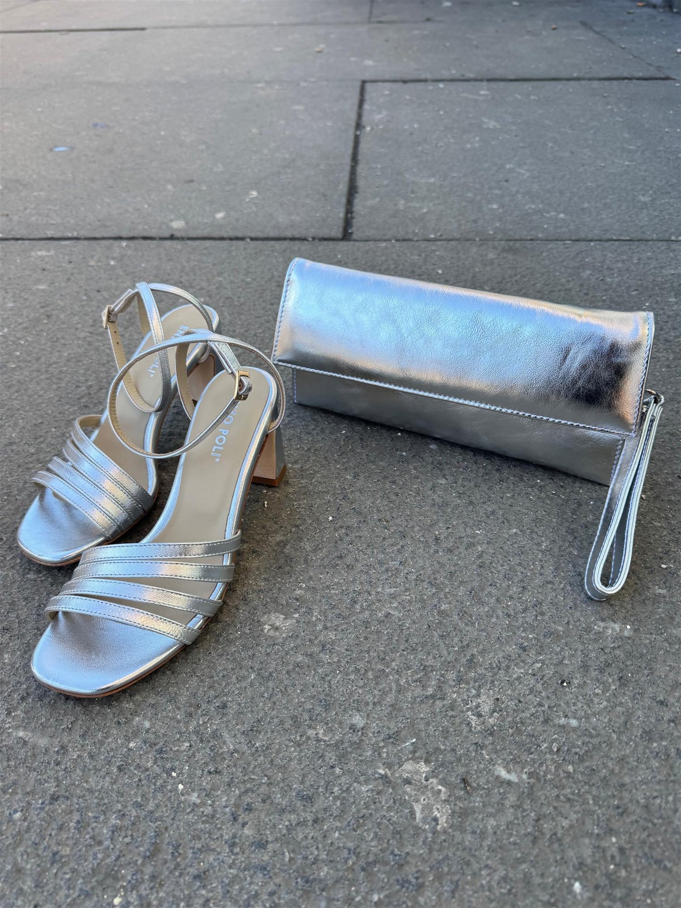 En fin sko til fest, bryllup og andre sommerlige anledninger. Vi har også en matchende clutch-veske i samme skinn.
