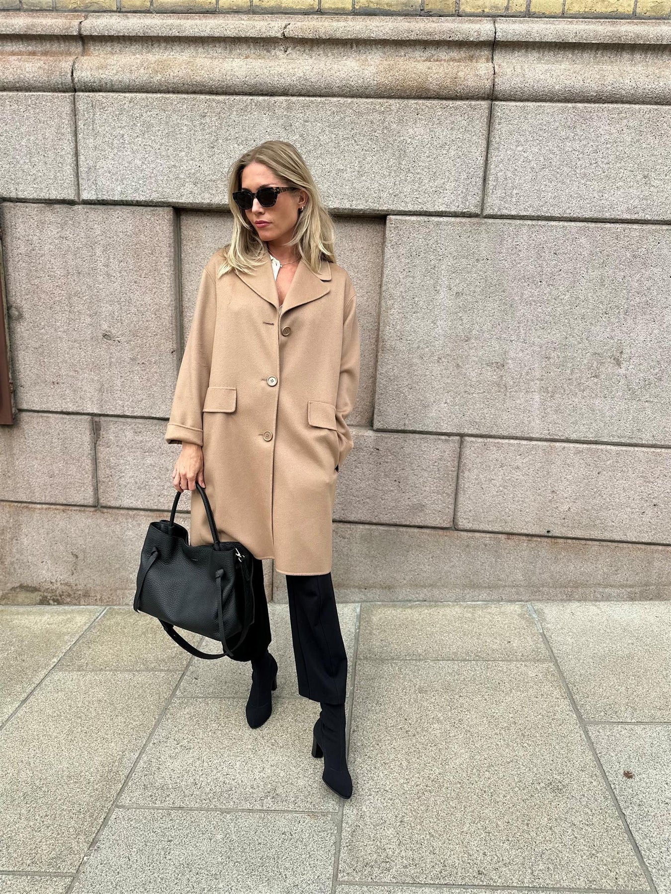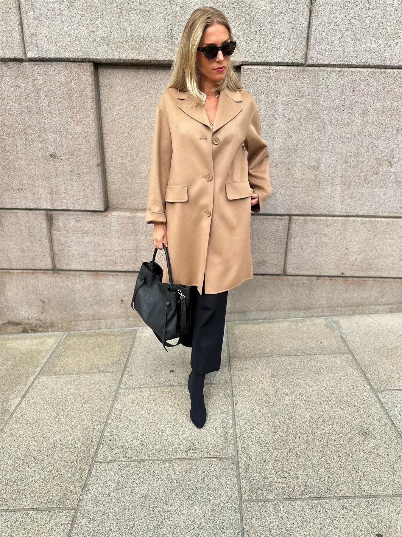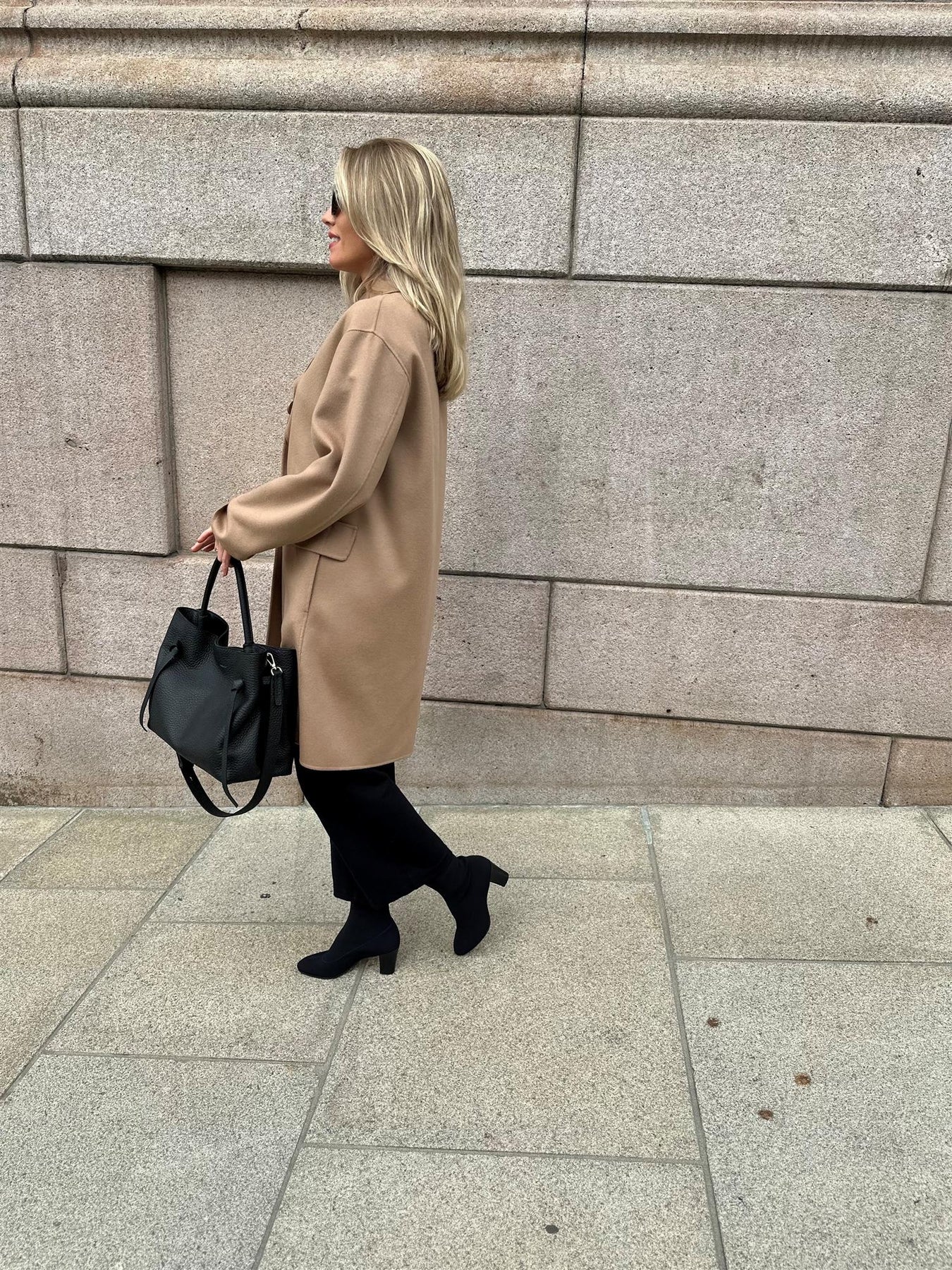 Hælen er 6 cm høy og er trukket i sort lær. Skoen har en tynn vibramsåle.
