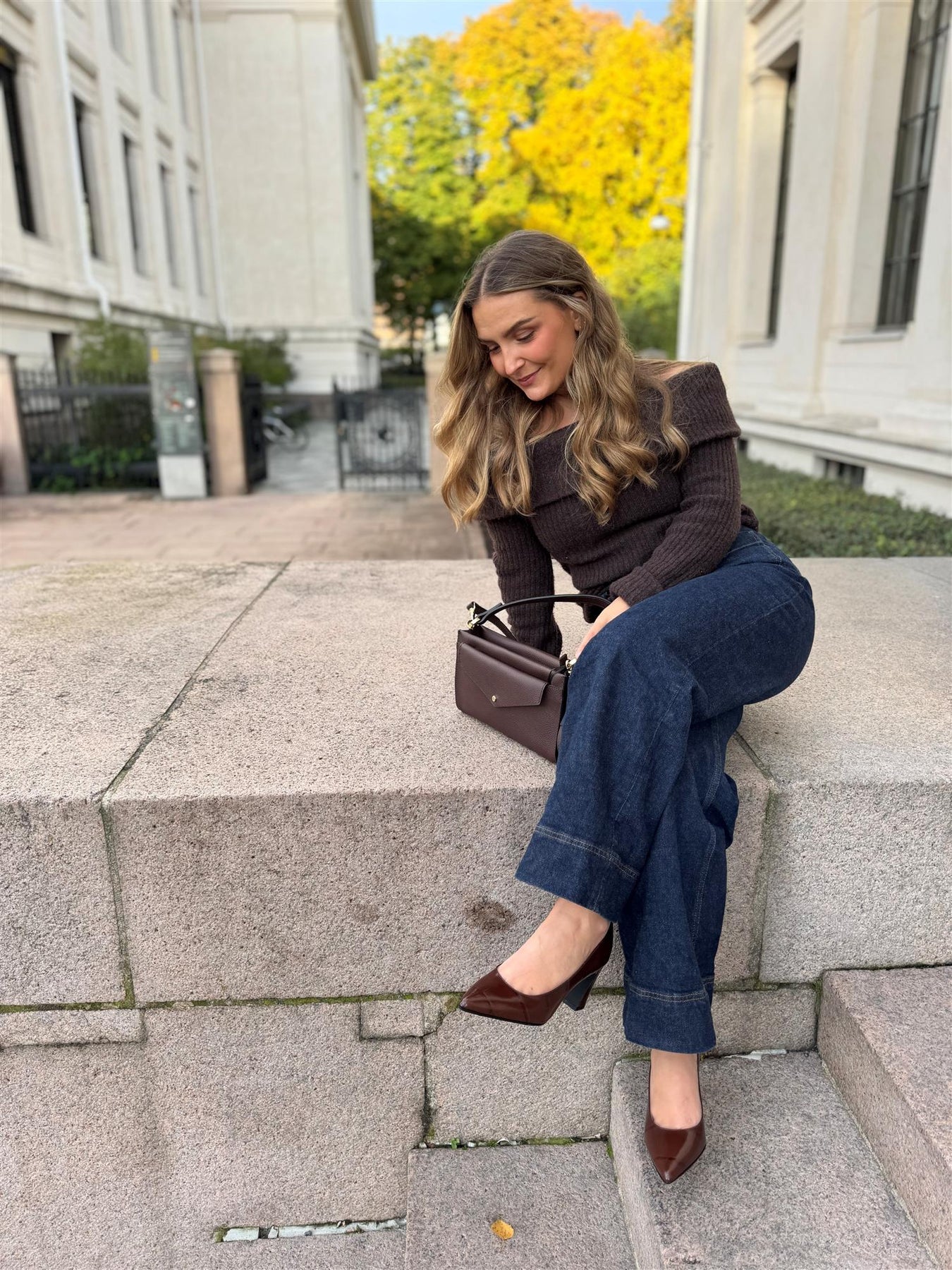 Vesken kommer i to klassiske farger: rød og sjokoladebrun.