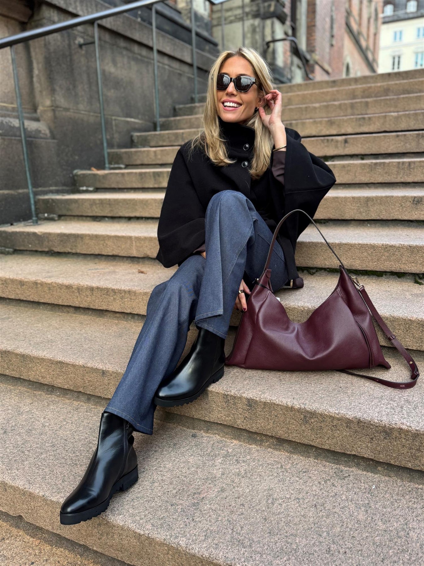 Stilren og elegant ankelstøvlett i glatt kalveskinn med en moderne silhuett. Modellen har en kraftig gummisåle med markert mønster som gir godt grep, og glidelås på innsiden for enkel av- og påkledning. Innsiden er fôret med myk lammepels som sørger for varme og komfort gjennom hele dagen.