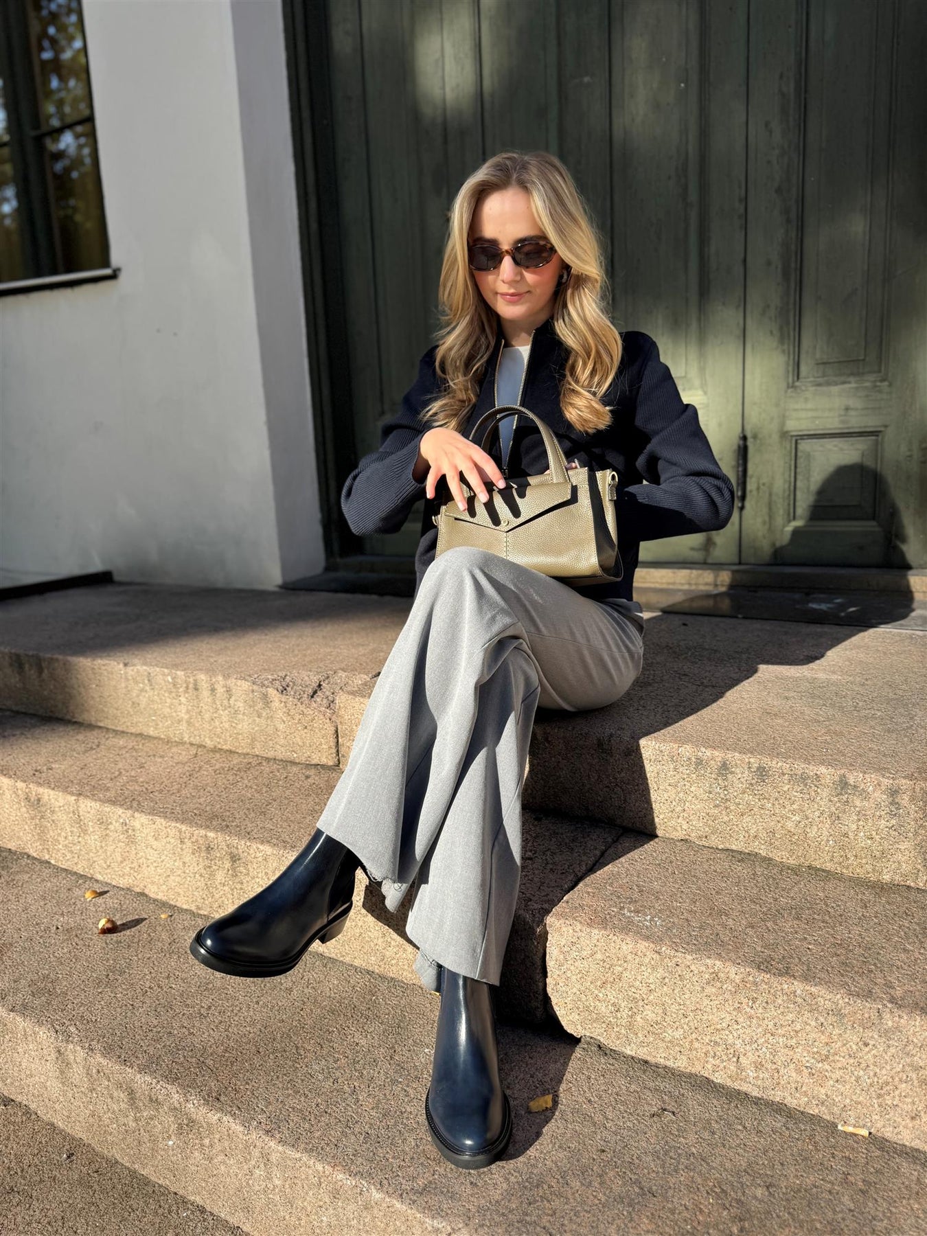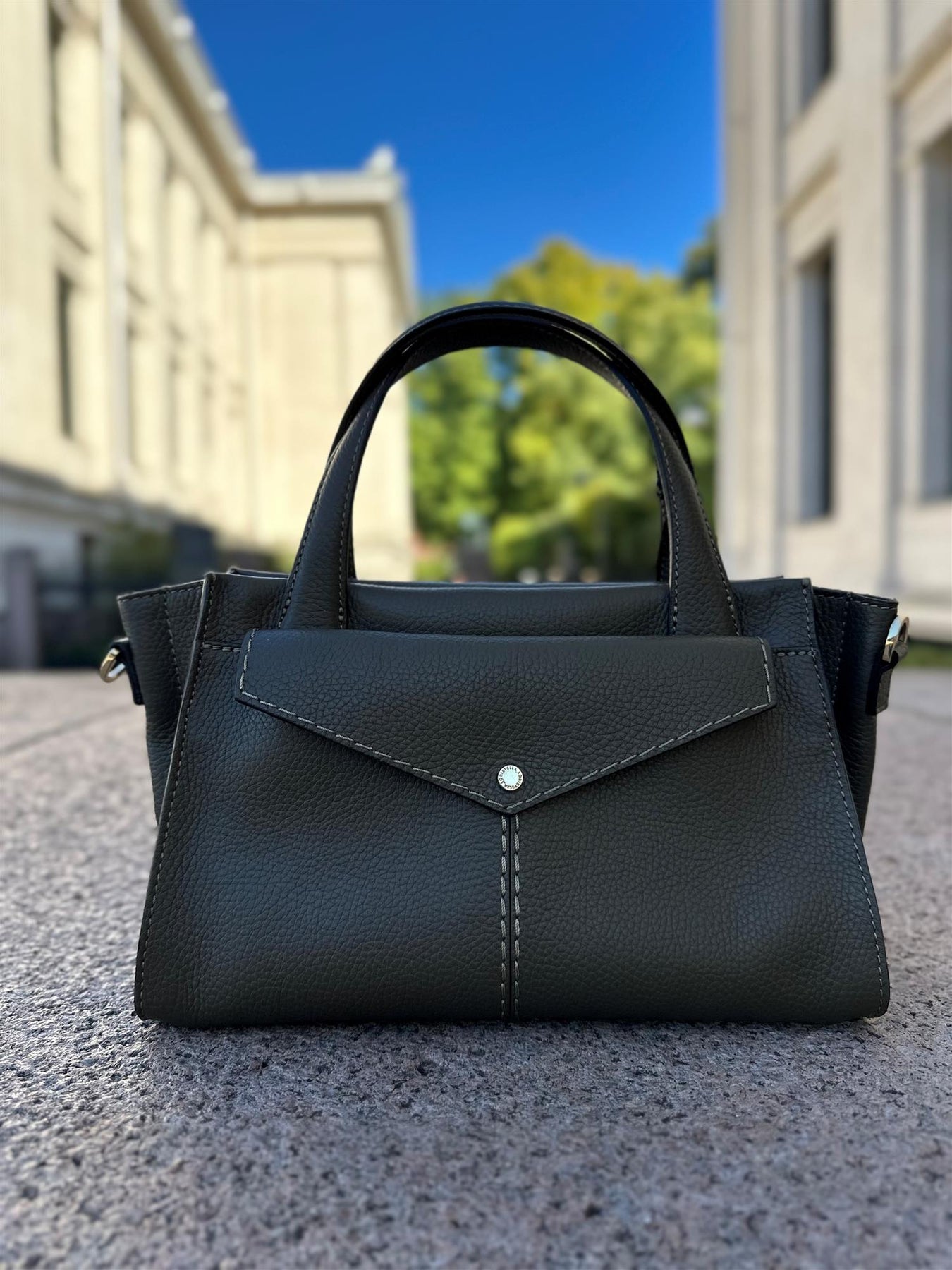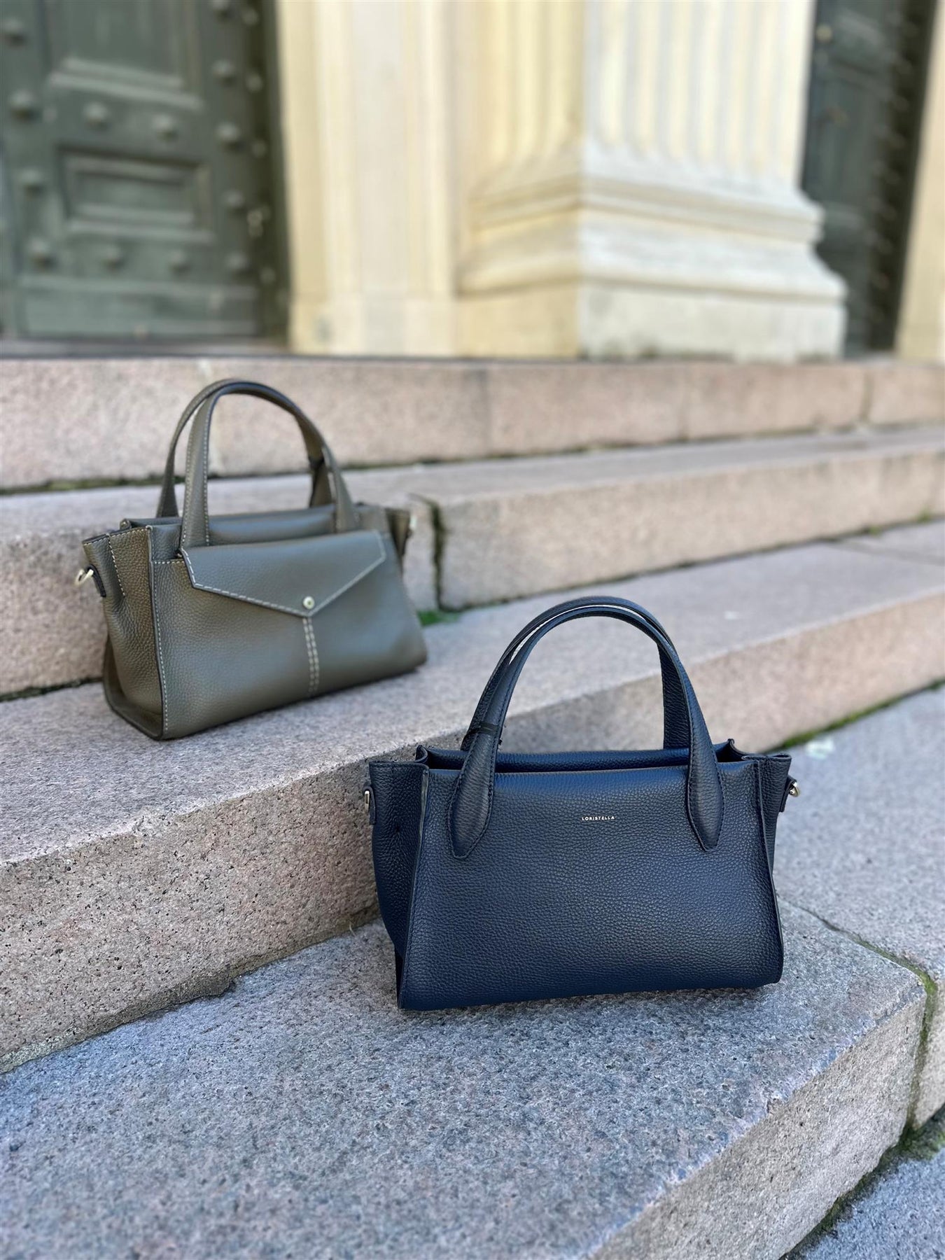 En elegant og funksjonell veske i kalveskinn – perfekt til både hverdag og penere anledninger. Vesken har et tidløst uttrykk med rene linjer og solid form, og leveres med lang skulderrem slik at du kan bruke den både på skulderen og i hånden.
