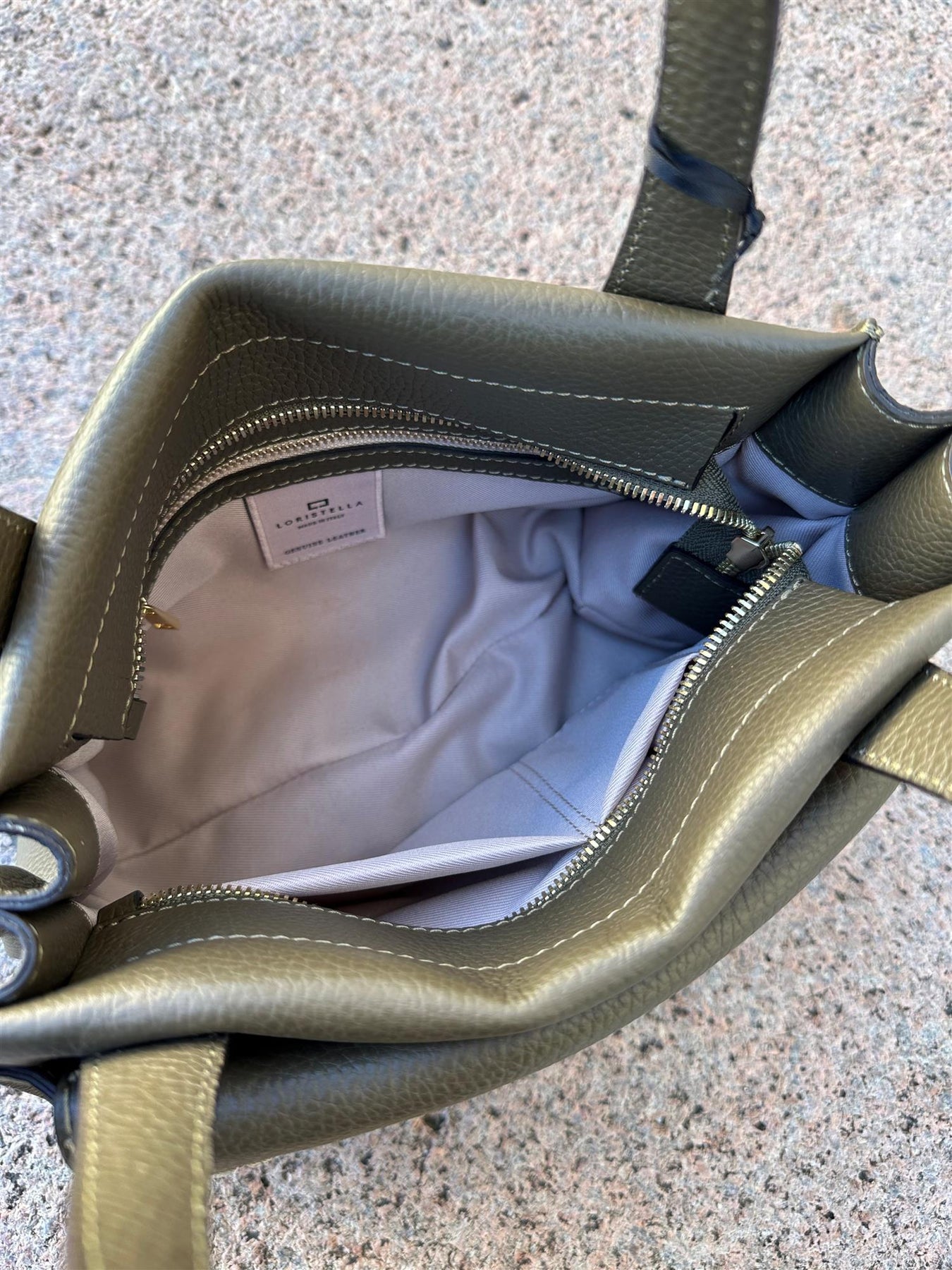 Vesken kommer i tre klassiske farger: oliven, blå og sort.