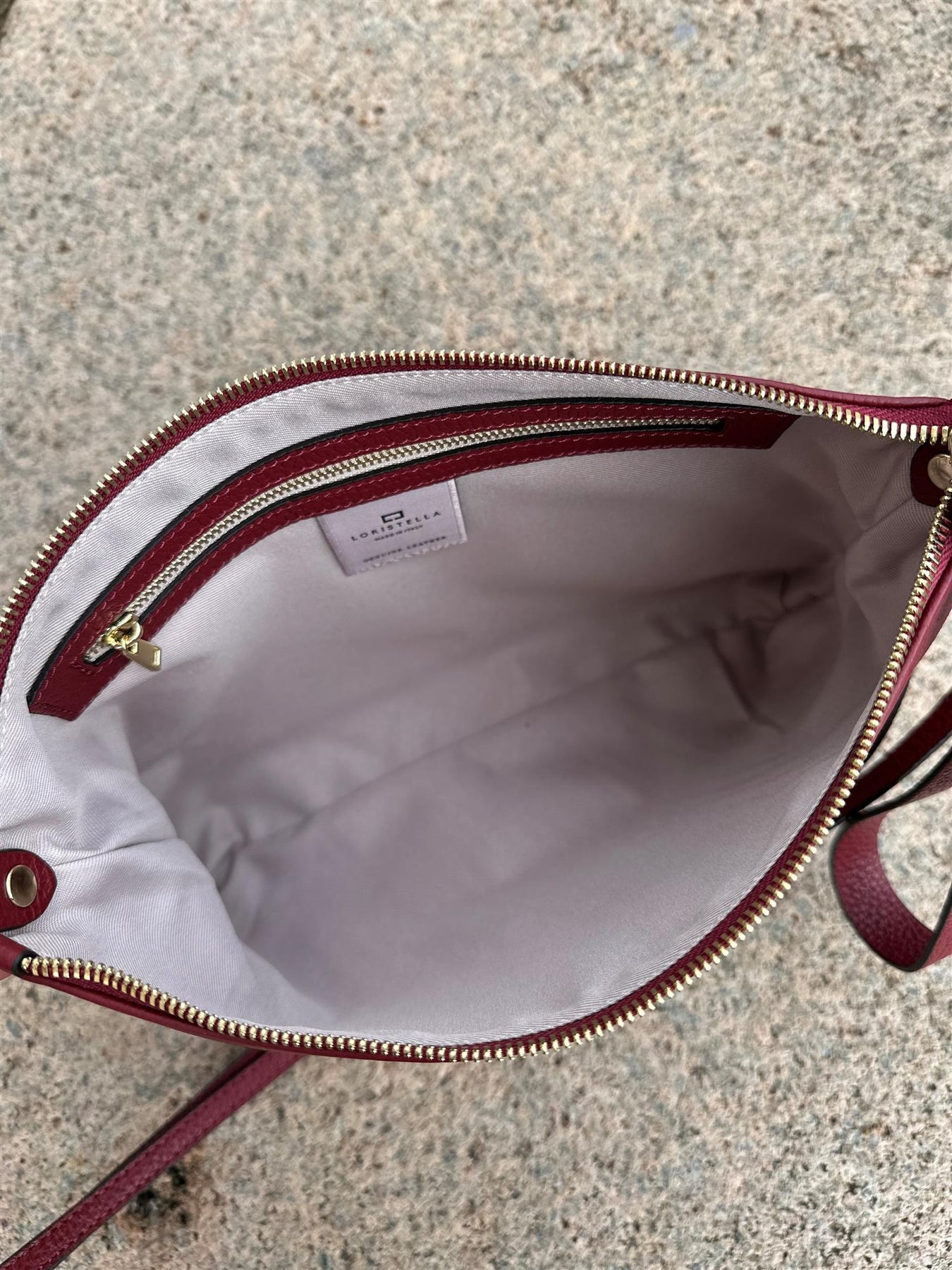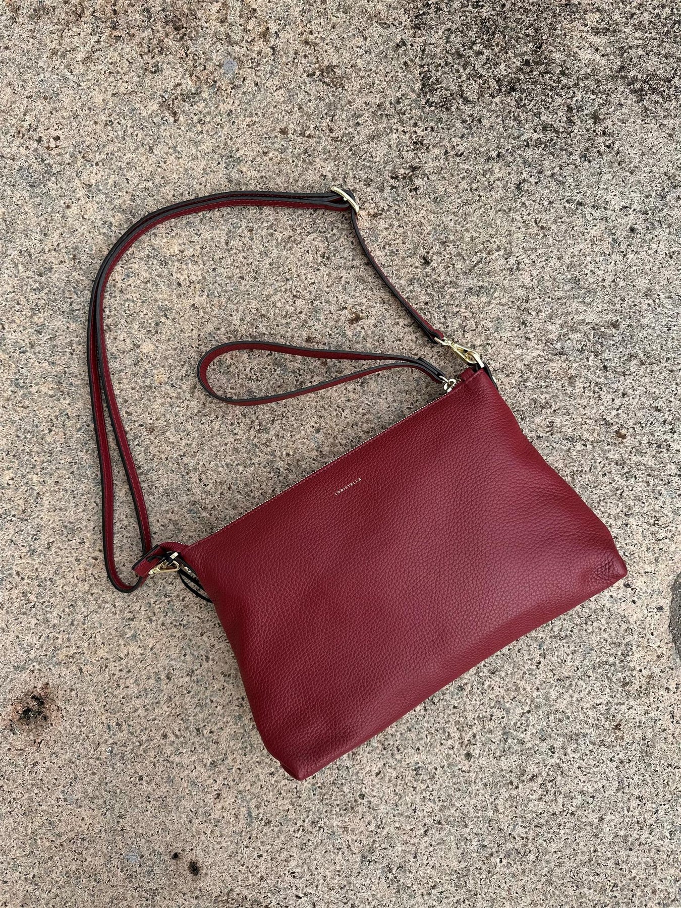 Elegant og tidløs crossbody-veske i strukturert kalveskinn. Modellen har en slank silhuett med justerbar skulderrem, og kan bæres både på skulderen og crossbody. Vesken lukkes med glidelås og har praktiske lommer på innsiden som gir god oversikt over dine nødvendigheter.