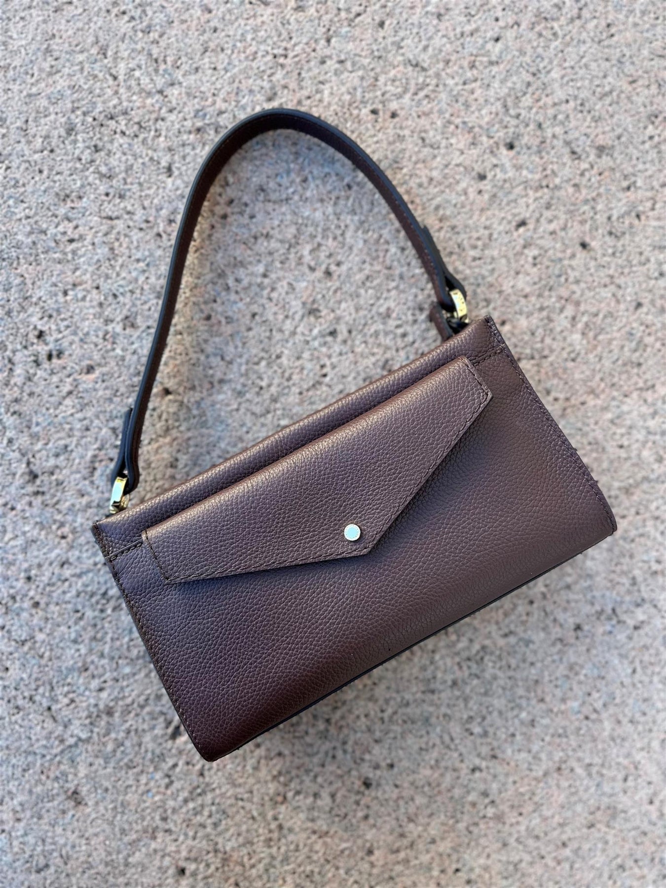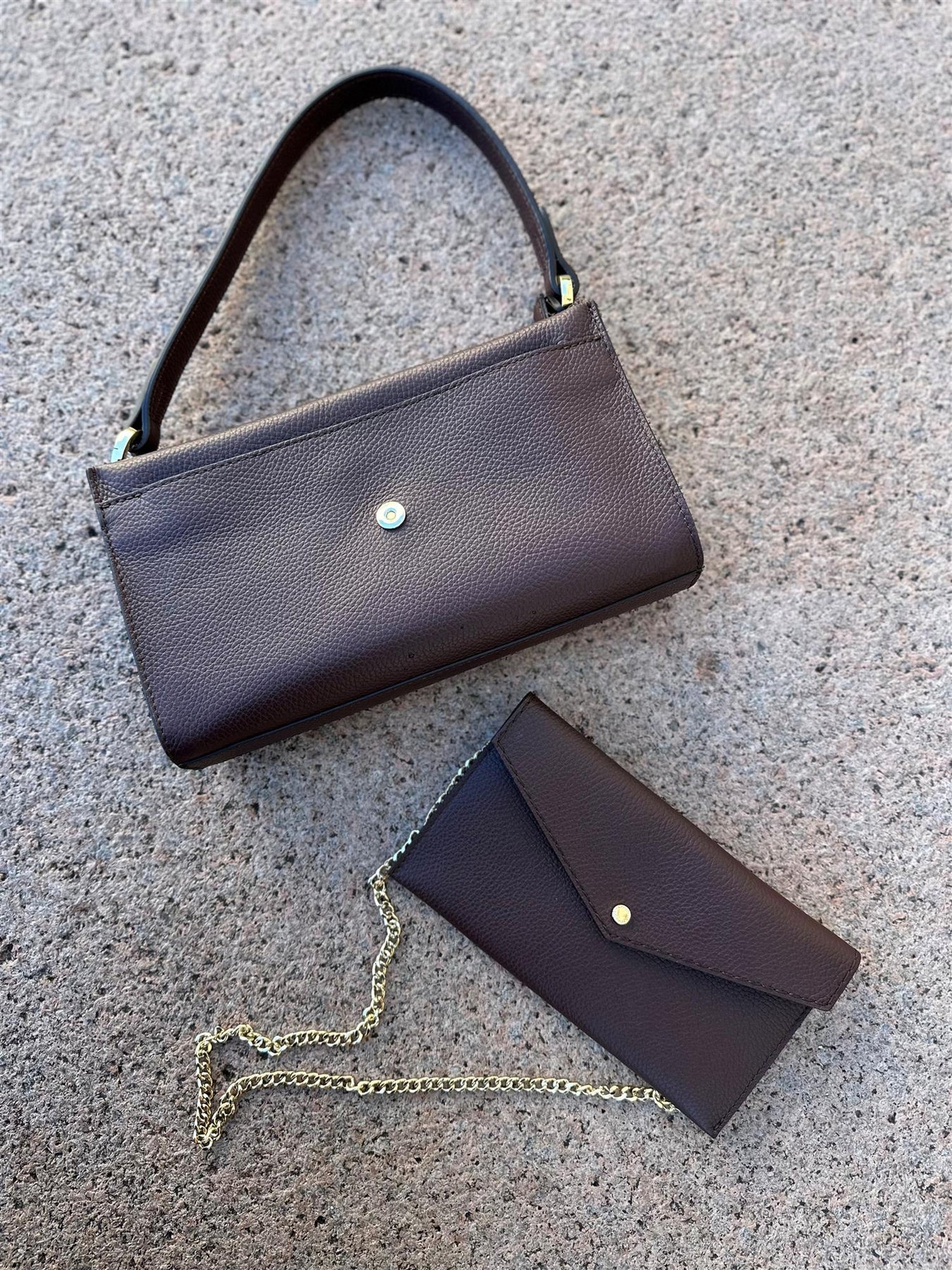 Det unike designet med en uttagbar konvolutt gjør vesken ekstra anvendelig. Konvolutten har gullkjede og kan brukes separat som en liten clutch, ideell til kvelden eller når du bare trenger det mest nødvendige.