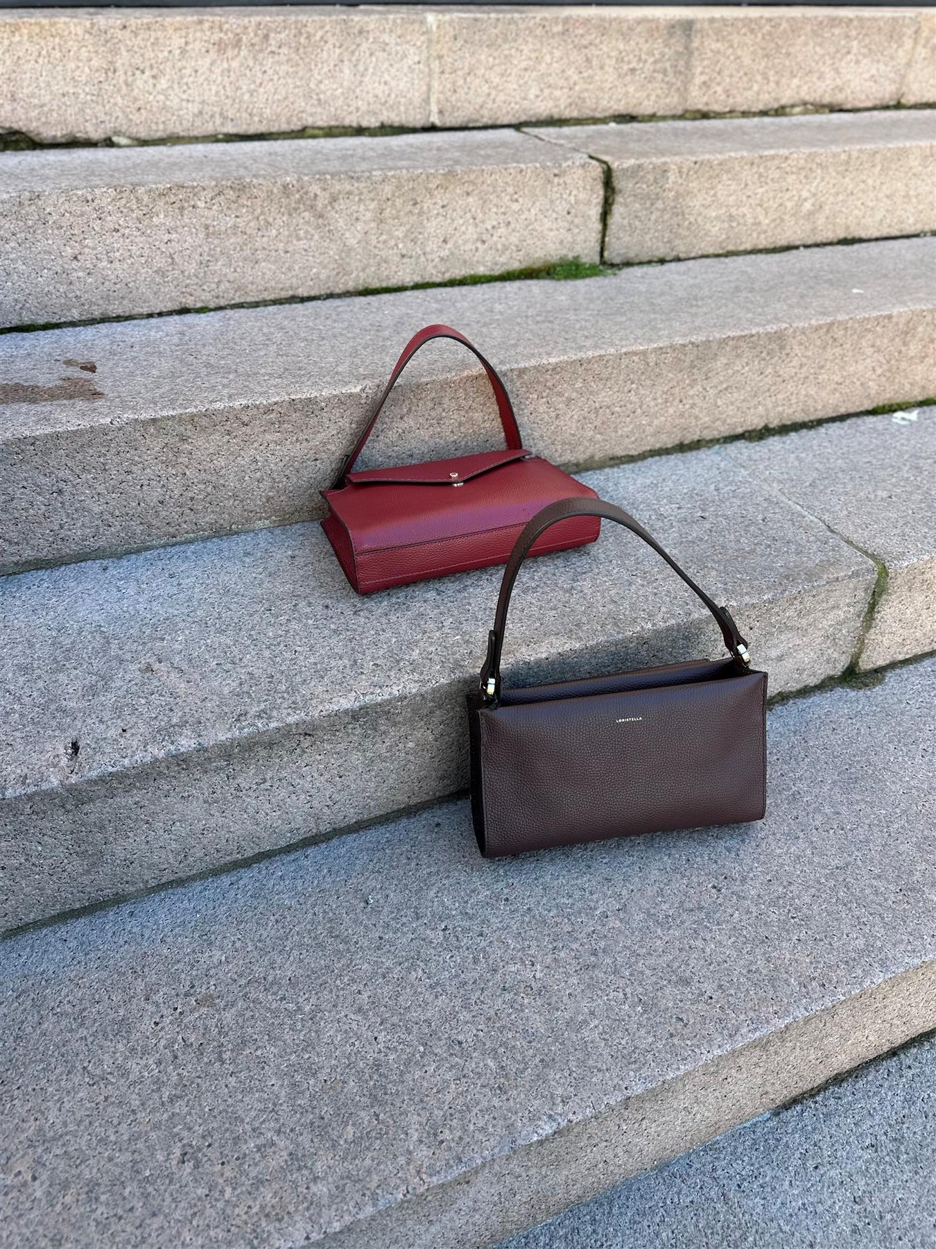 Vesken kommer i to klassiske farger: rød og sjokoladebrun.